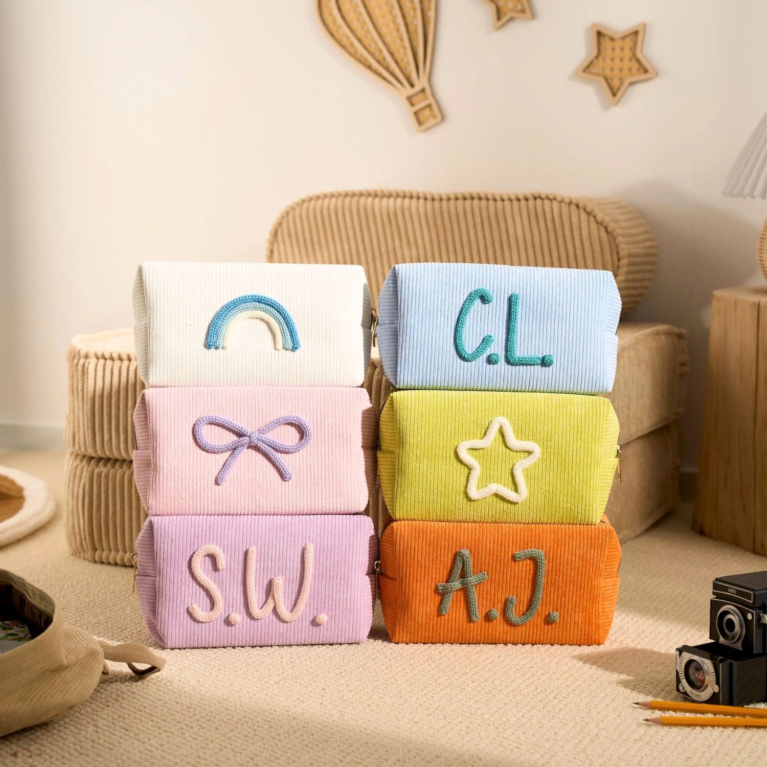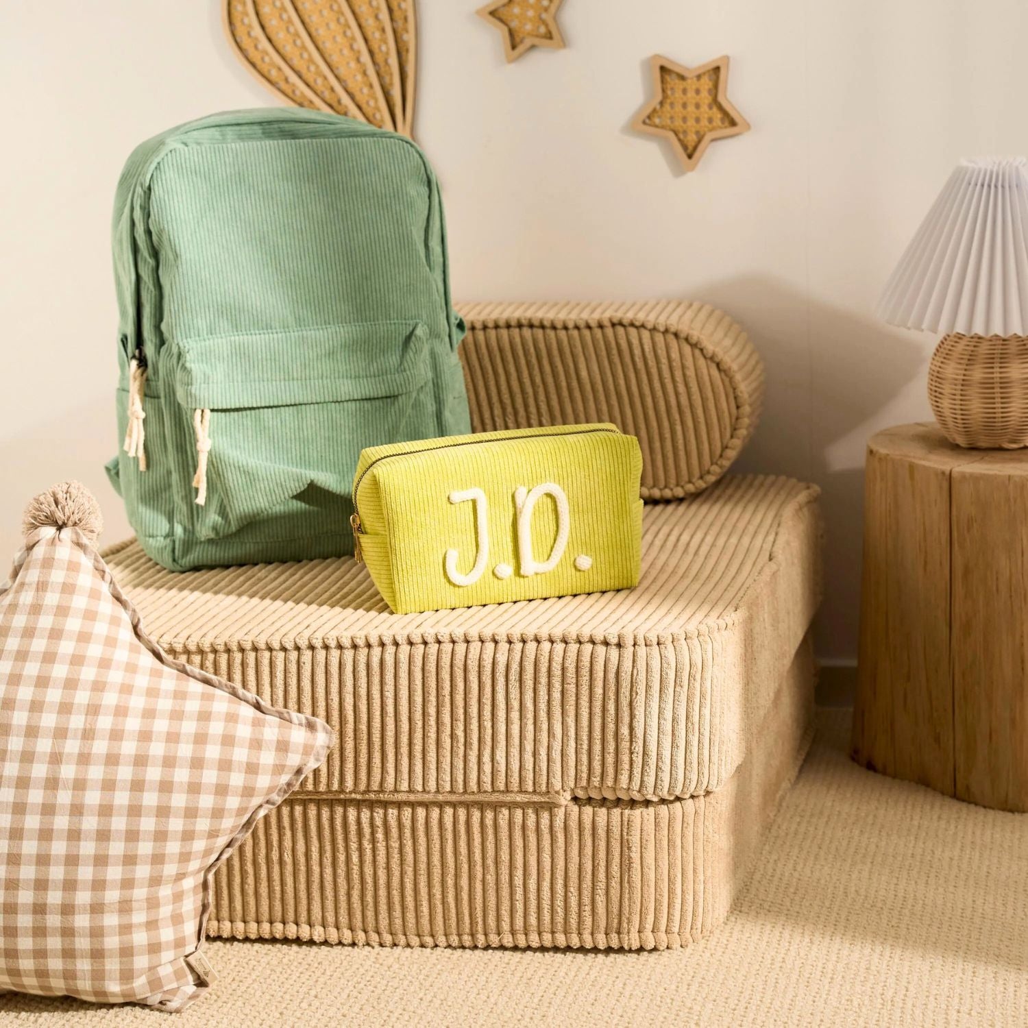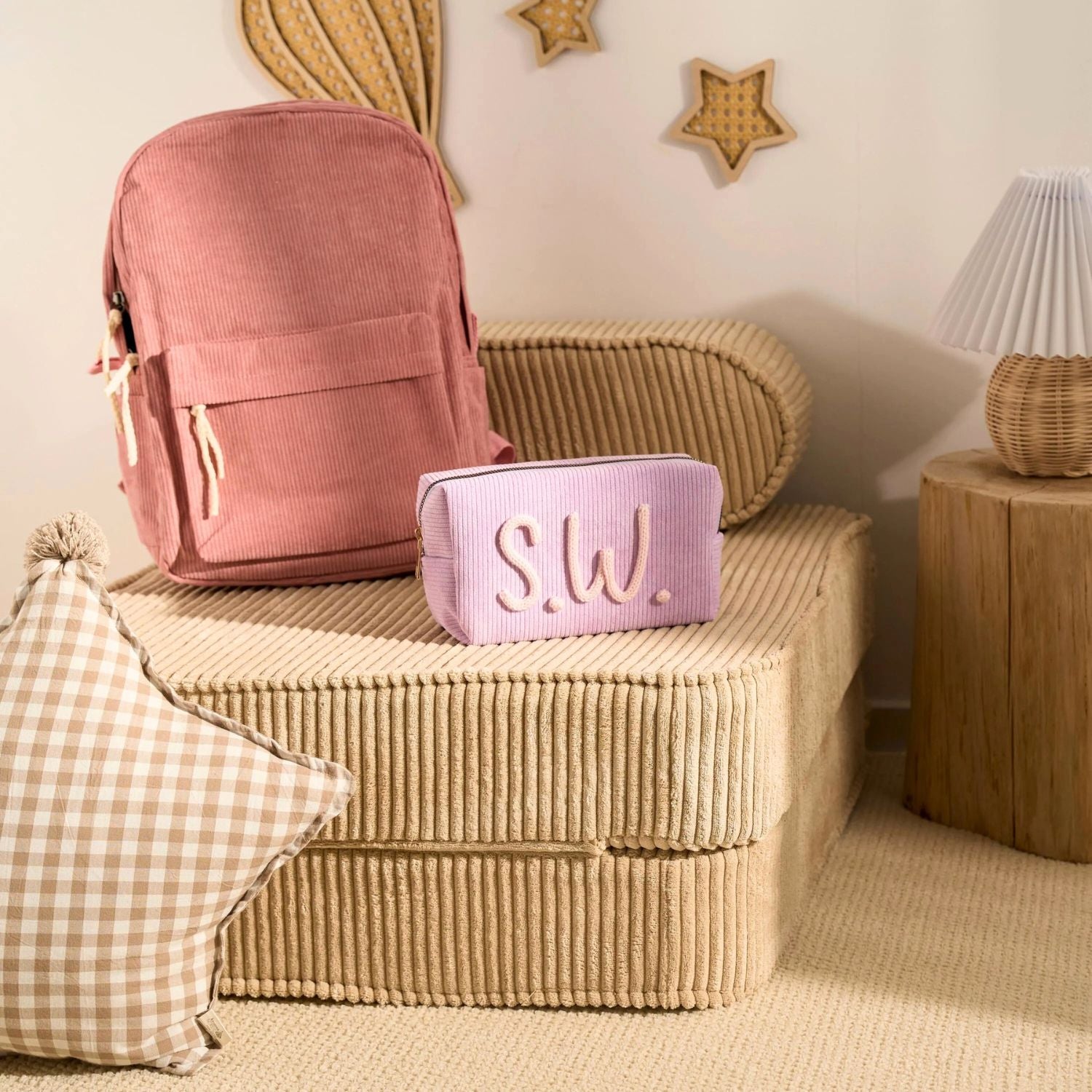 Keep school supplies tidy and stylish with our handcrafted personalized pencil cases, designed to complement our best-selling toddler backpacks. Made from the same soft and durable corduroy fabric, these cases are not only practical but also add a special touch with your child’s initials, name, or favorite design.