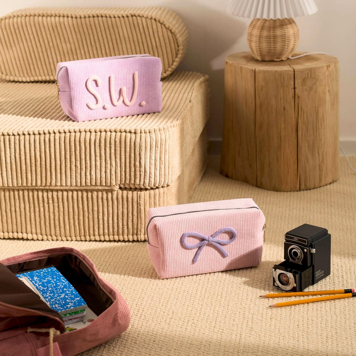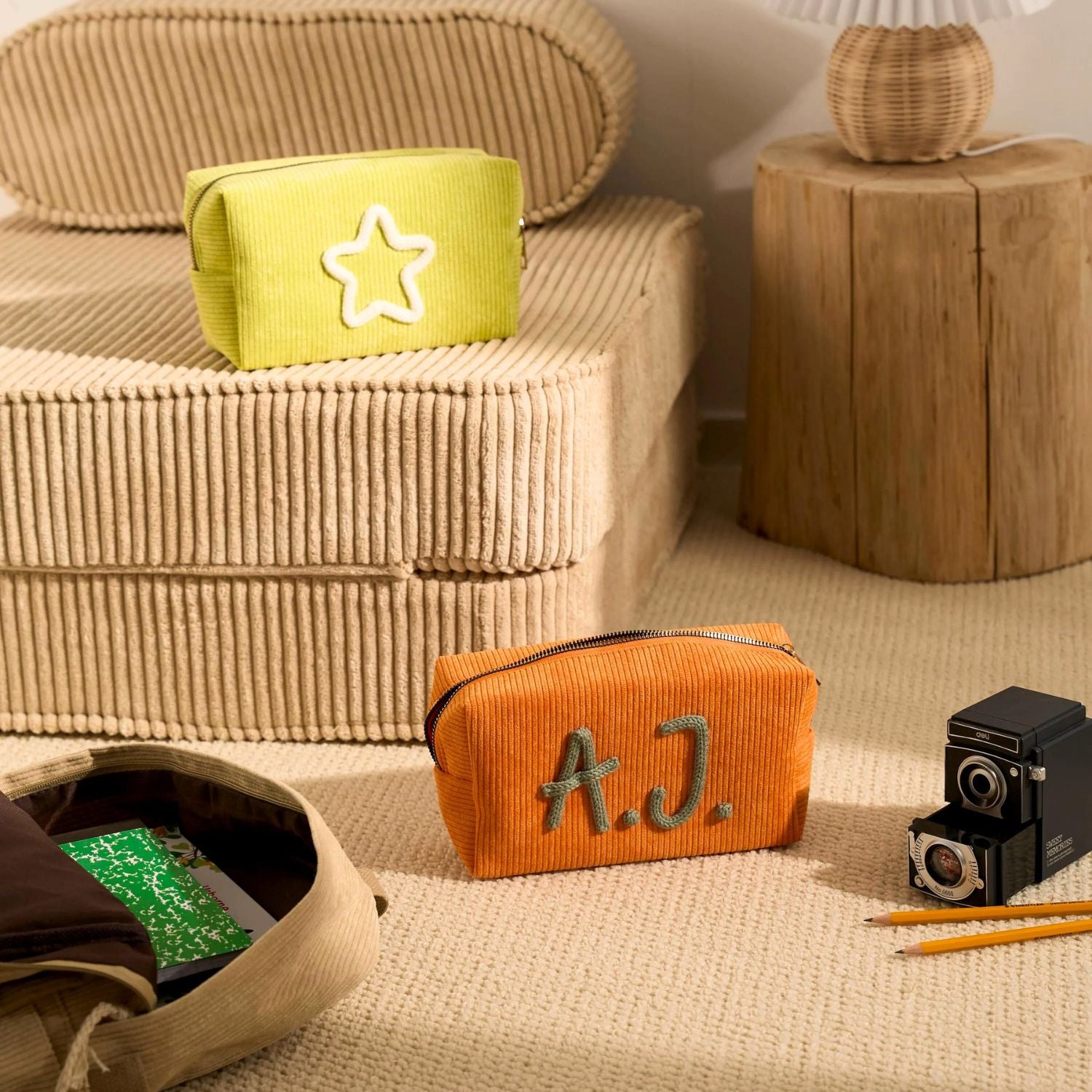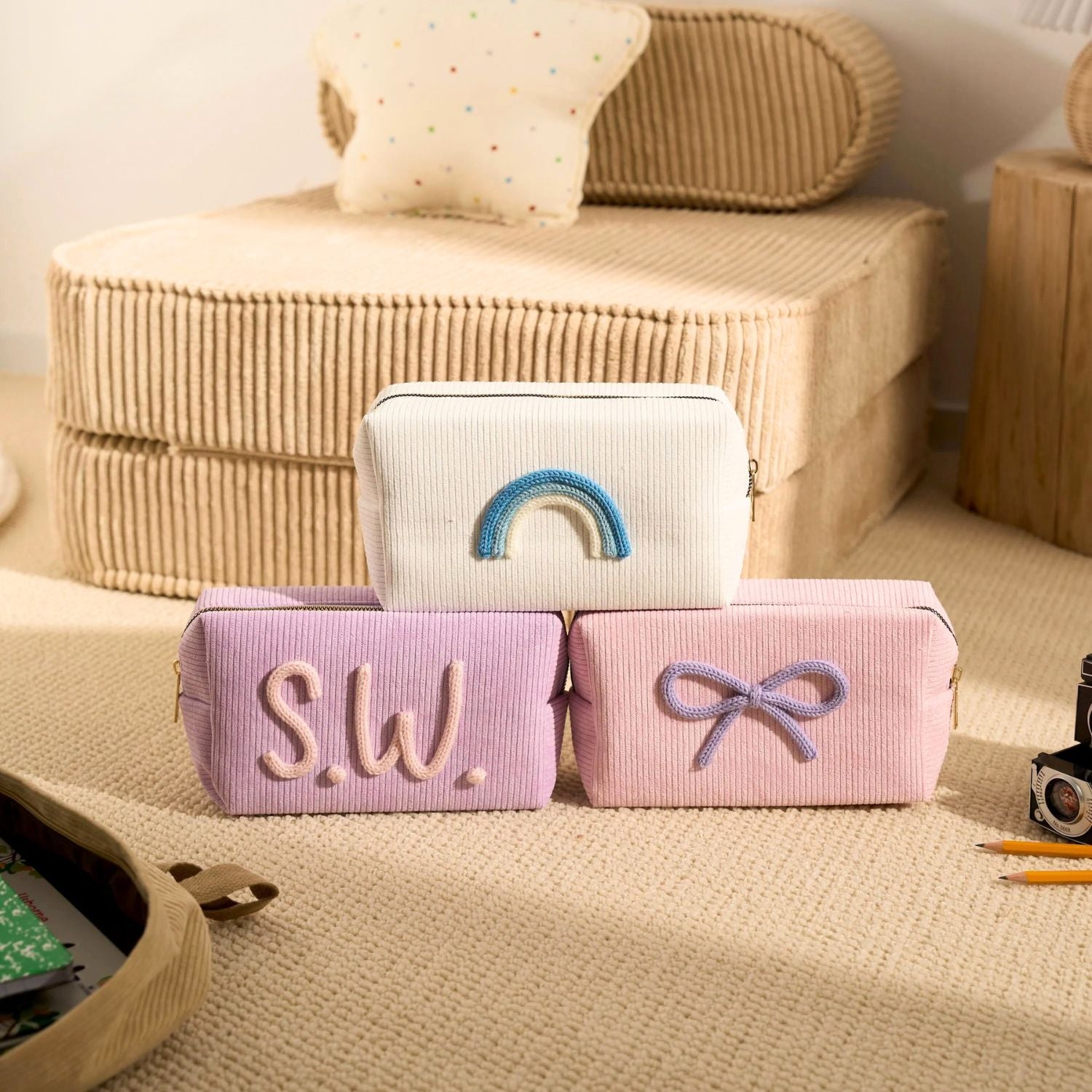 Keep school supplies tidy and stylish with our handcrafted personalized pencil cases, designed to complement our best-selling toddler backpacks. Made from the same soft and durable corduroy fabric, these cases are not only practical but also add a special touch with your child’s initials, name, or favorite design.