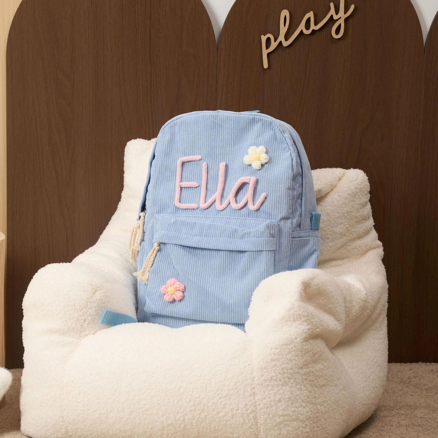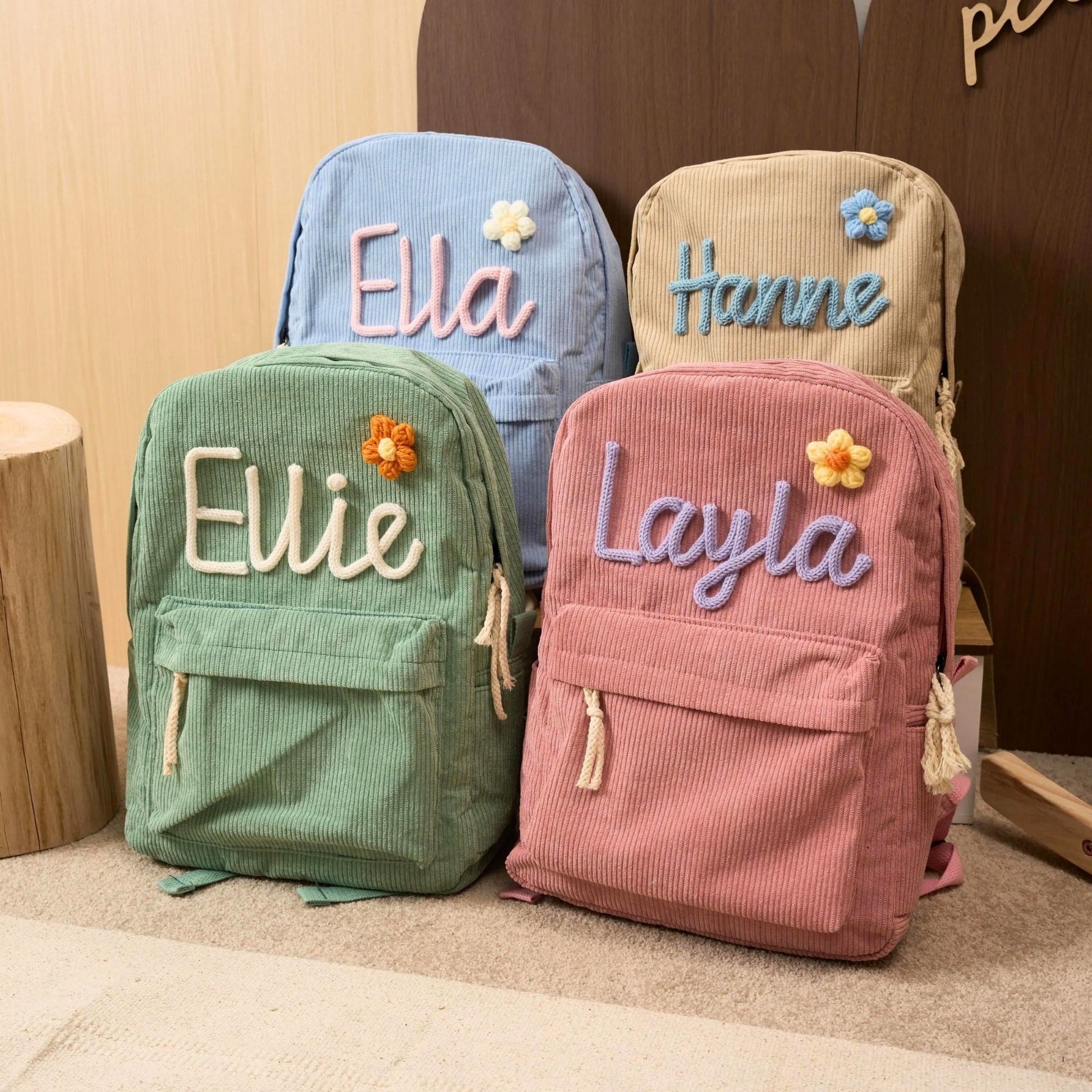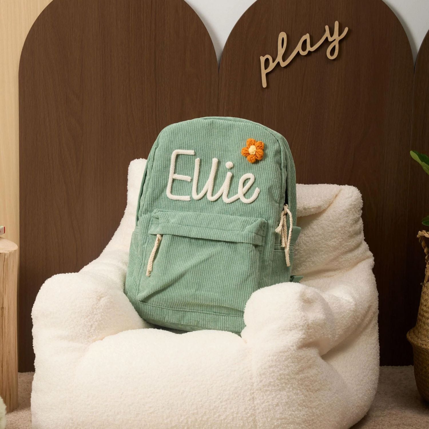 Make this school year unforgettable with our exclusive personalized backpacks, crafted to reflect your child’s unique style. Whether it’s for kindergarten, school, or everyday adventures, these handcrafted corduroy backpacks are designed to be both practical and special. They measure 15" x 11" x 5", offering the perfect balance of spacious storage and lightweight comfort. The corduroy texture adds a soft, cozy touch while still being durable enough for daily use.